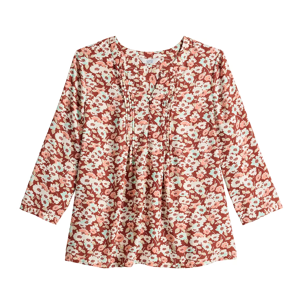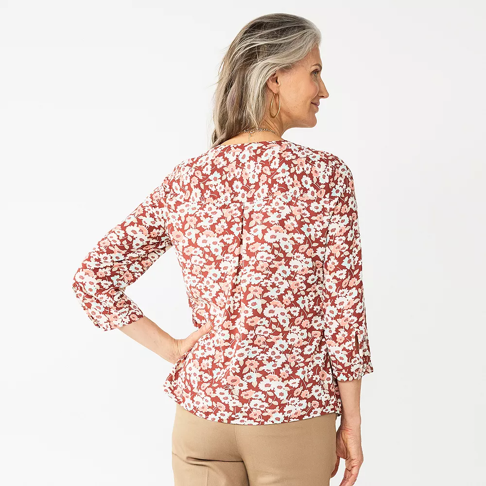 Petite Croft & Barrow® Splitneck Pintuck Blouse