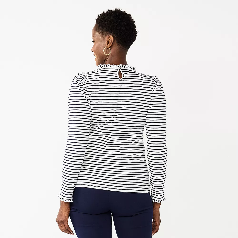Women’s Croft & Barrow® Long Sleeve Ruffle Neck Top