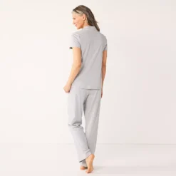 Women’s Croft & Barrow® Short Sleeve Henley Pajama Top & Pajama Pants Sleep Set